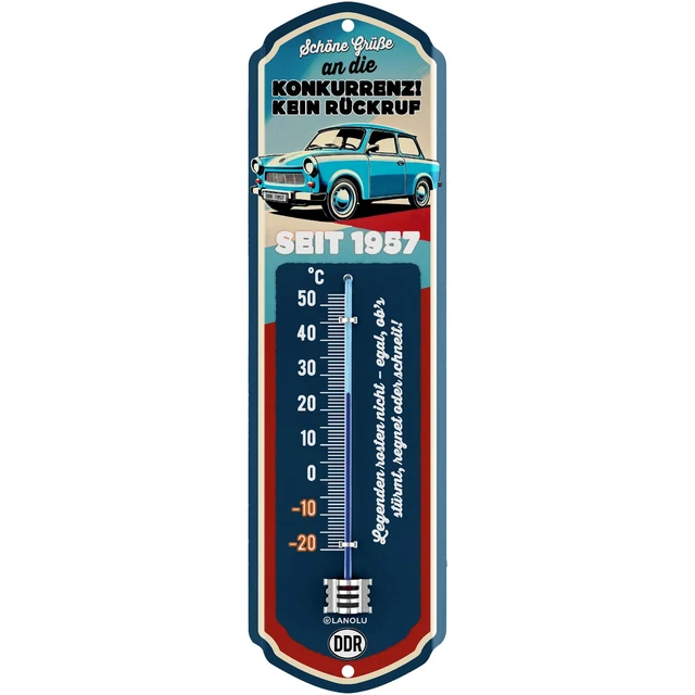 LANOLU Retro Thermometer TRABANT - DDR Nostalgie Geschenk Für Männer 8x28cm