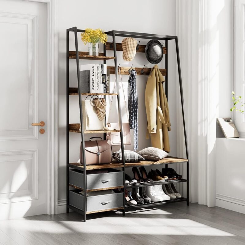DEECOZY Flurgarderobe Mit Sitzbank - Moderner Garderobenständer Mit Schuhregal In Schwarz