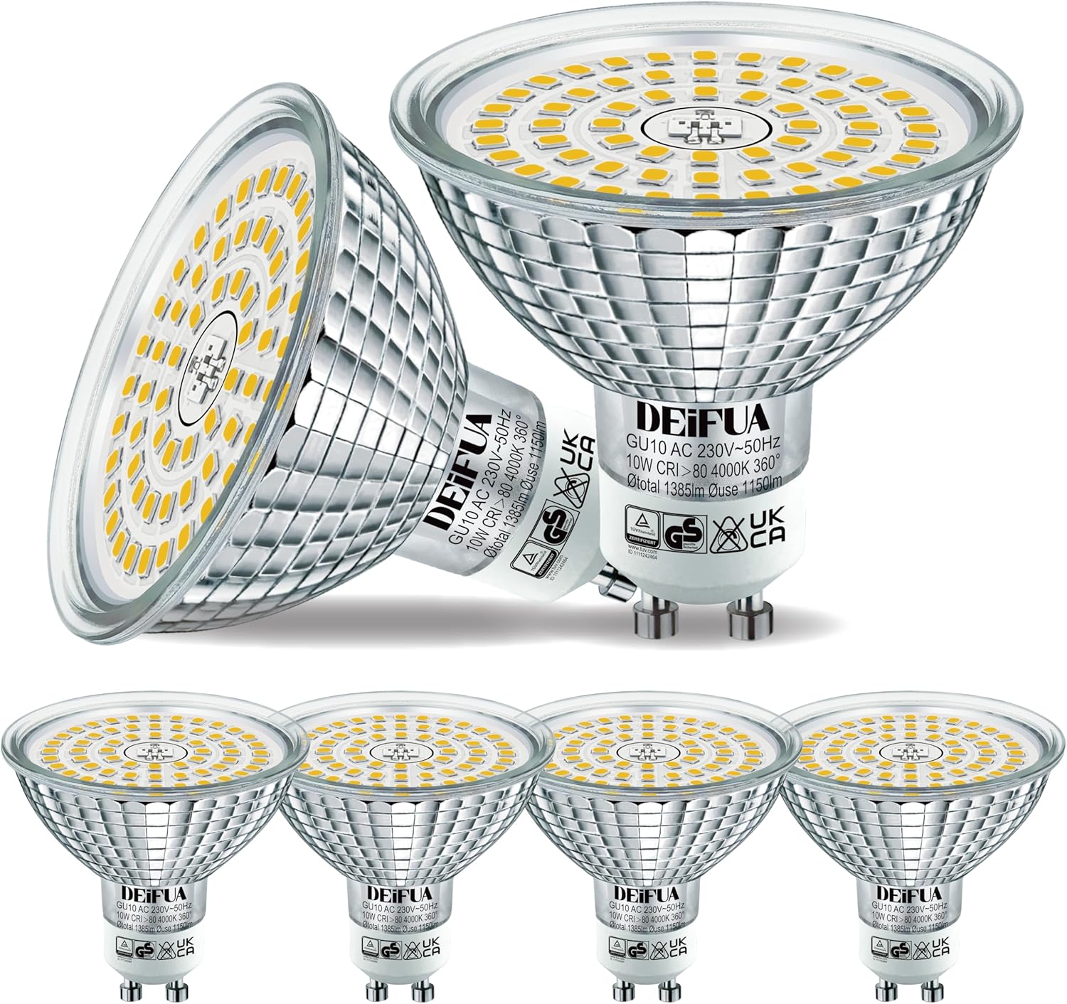 Du willst deine alten Halogenlampen ersetzen und dabei Strom sparen? Die DEIFUA GU10 LED-Lampen sind die perfekte Lösung! Mit nur 6 Watt Leistung ersetzen sie easy eine 100-Watt-Halogenlampe. Im 6er-Pack hast du gleich genug für mehrere Räume.