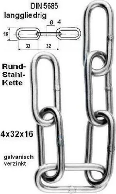 1m Rundstahlkette 4mm DIN 766 - Verzinkte Kurzgliederkette Traglast 100kg