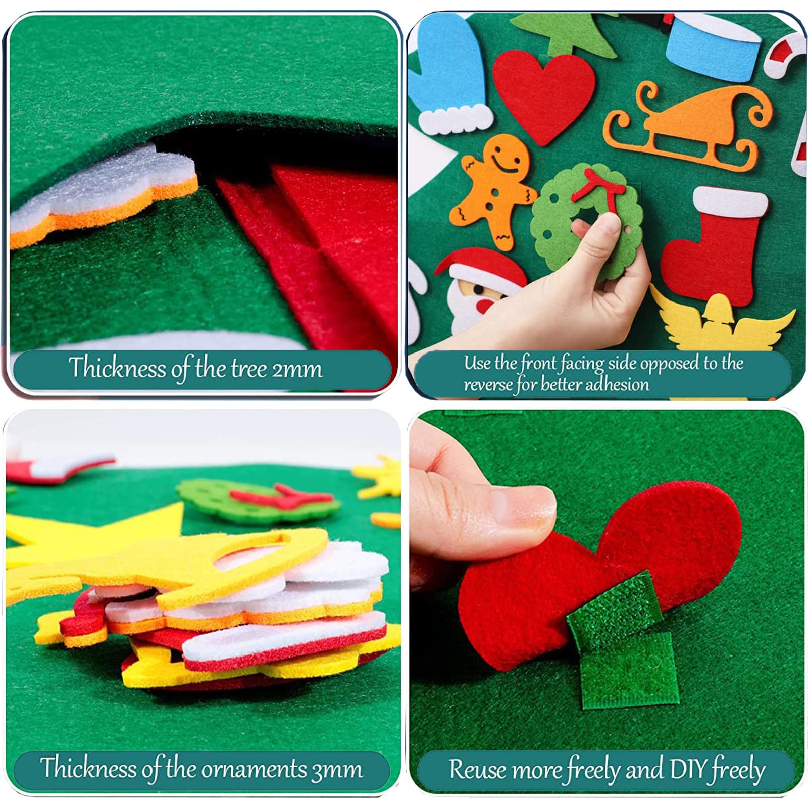 DIY Filz Weihnachtsbaum 100cm - Mit Ornamenten & LED Lichtern Für Kinder Dekoration