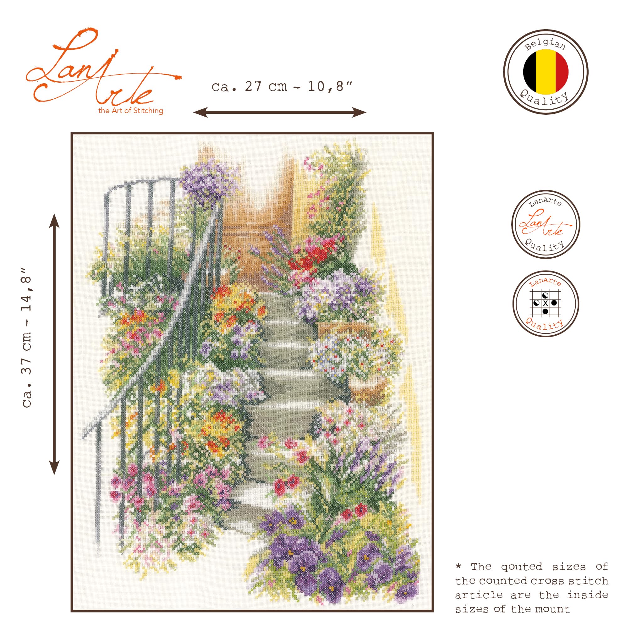 Lanarte Kreuzstich Set TREPPE MIT BLUMEN - DIY Stickpackung 27x37cm - Kreativset Für Erwachsene