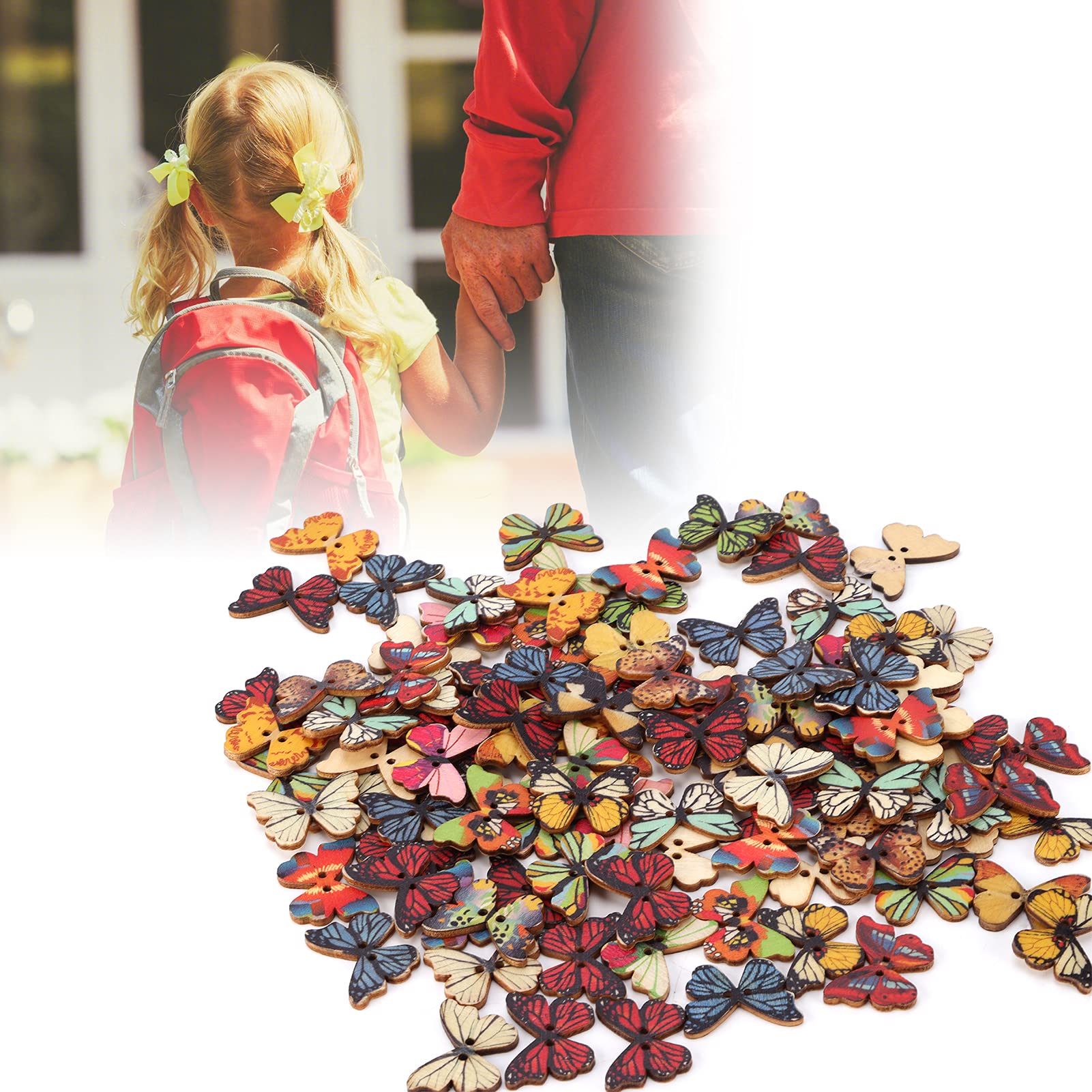 DIYEAH Schmetterlingsknöpfe 100 Stück - Kunstharz Knöpfe Für Bastelarbeiten