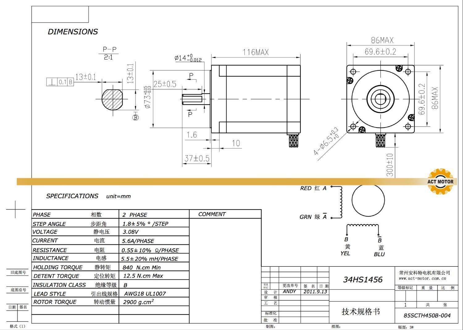 Power für deine CNC-Projekte! Der Nema34 Schrittmotor 34HS1456 ist ein echter Kraftprotz mit 8,4 N.m Haltemoment und 5,6A Nennstrom. Zusammen mit dem DM860 Treiber bildet er ein unschlagbares Team für anspruchsvolle Automatisierungsprojekte. Perfekt für CNC-Maschinen, Laser-Gravierer, 3D-Drucker und industrielle Anwendungen.