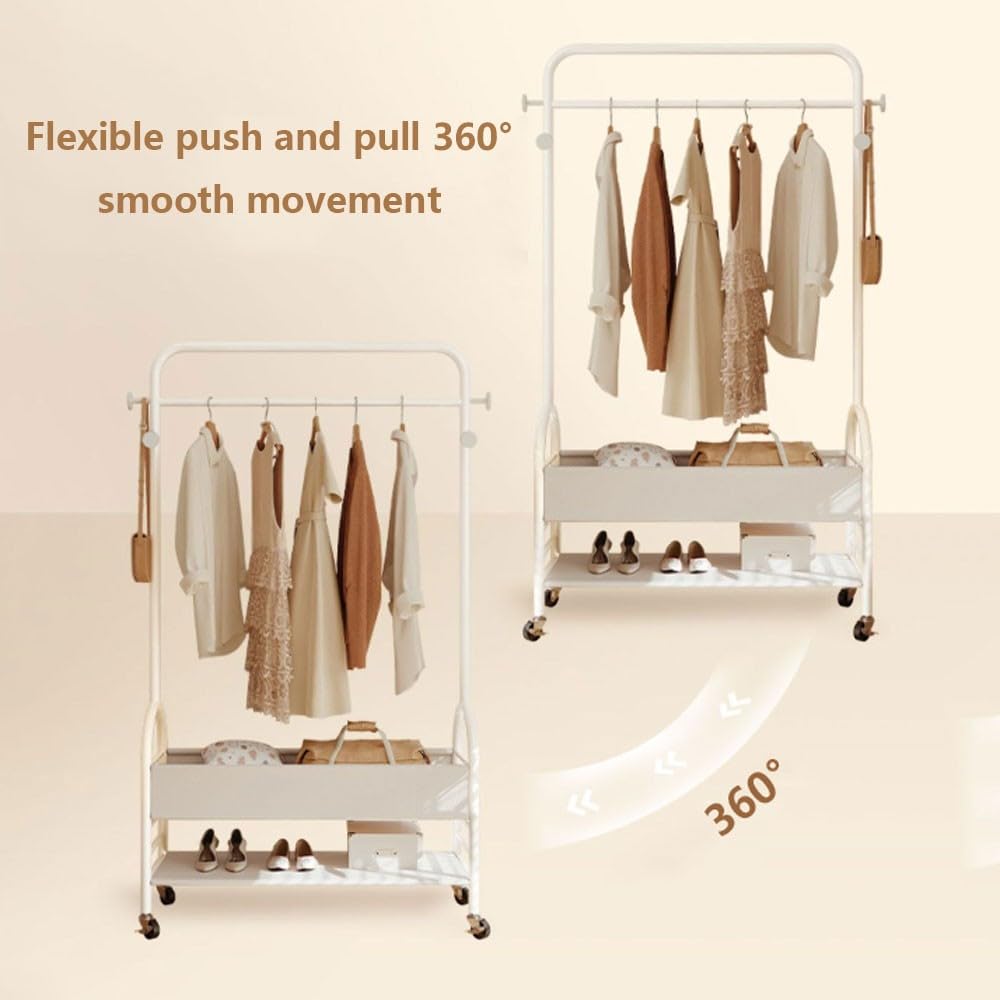 DODOBD Kleiderständer Metall - Doppelt Mit Schuhregal & Rollen