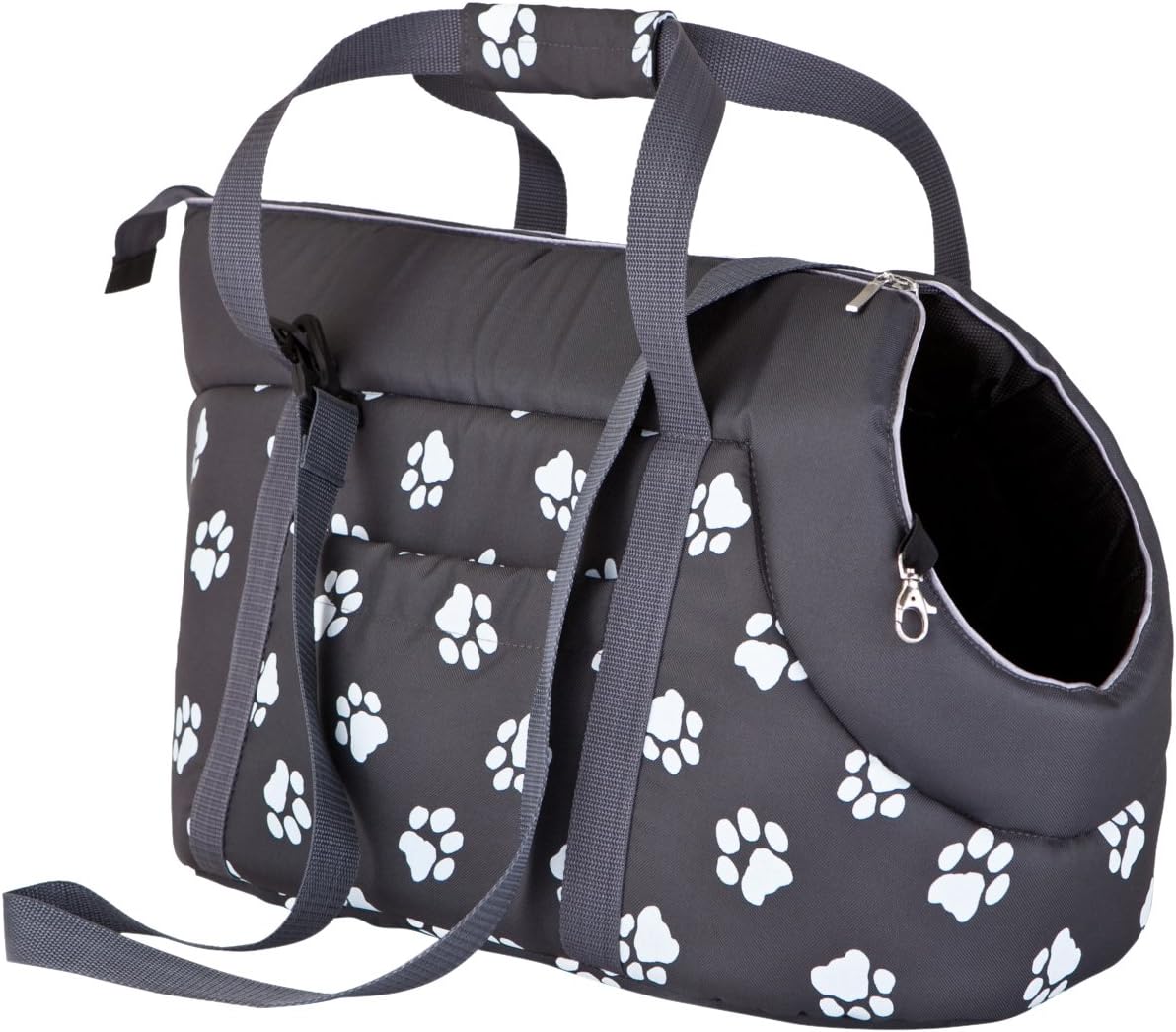 DOGGY Hobbydog Hundetasche - Tragetasche Für Kleine Hunde & Katzen 22x20x36 Cm Schwarz Mit Pfotenprint