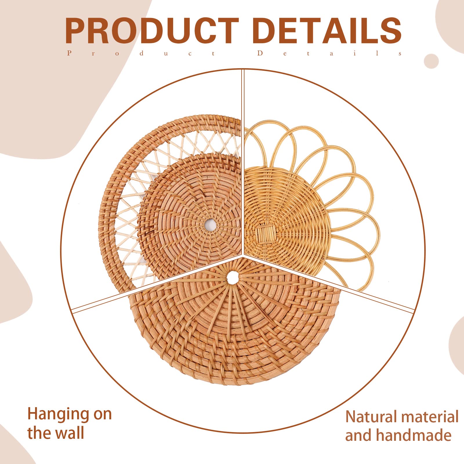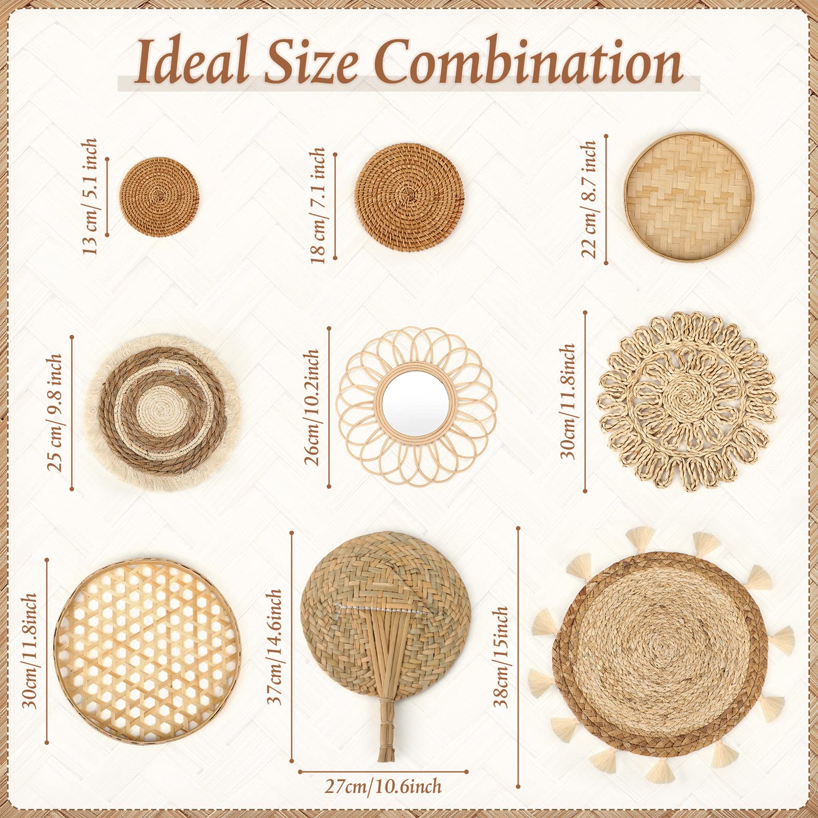 DOKENO 10-teiliges Boho Wandkorb Set - Handgewebte Rattankörbe Für Wohnzimmer & Flur