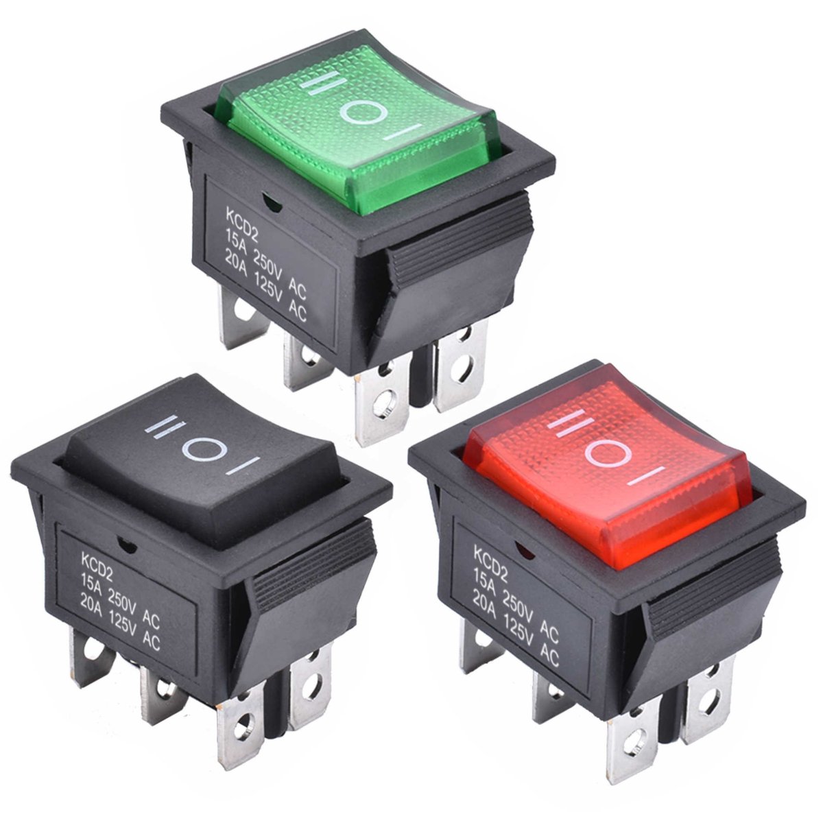 Perfekt für deine Elektroprojekte! Dieses Set enthält 4 Wippschalter (2 rot, 2 schwarz) mit DPDT Kontakttyp und 3 Positionen (ON/Off/ON). Nennleistung: AC 20A/125V oder 15A/250V. Mit 6 Pins für vielseitige Anwendungen. Einfache Schalttafelmontage mit 33x22mm Bohrungsdurchmesser. Inklusive 8 Überbrückungsdrähten, Anschlussdrähten und Isolierhülsen. Aus hochwertigem, ungiftigem Kunststoff mit guter Isolierung. Ideal für Auto, Boot, Haushaltsgeräte, Lampen und Elektronikprojekte. Einfach zu installieren mit Schnallenbefestigung - selbst für Einsteiger geeignet!