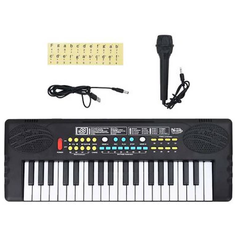 Das ultimative Musikerlebnis für kleine Musikstars! Dieses komplette Keyboard-Set bringt Kinderaugen zum Strahlen. Mit 37 Tasten, 22 Demosongs, 8 Instrumentenklängen und 8 Rhythmen entdeckt dein Kind spielerisch die Welt der Musik. Das Besondere: Ein verstellbares Mikrofon ist dabei, damit die Kleinen wie echte Popstars singen können. Der stabile Hocker trägt bis zu 50 kg und der abnehmbare Notenständer hält Notenblätter sicher. Lautstärke und Tempo sind regelbar - perfekt für erste musikalische Gehversuche. Das Keyboard ist extra für Kinderhände designed mit abgerundeten Ecken und kleinen Tasten. Alles aus robusten Materialien, die auch wildem Musizieren standhalten. Ein fantastisches Geschenk für Kinder ab 3 Jahren, das nicht nur Spaß macht, sondern auch die musikalische Entwicklung fördert. Vom ersten Ton an werden deine Kinder begeistert sein!