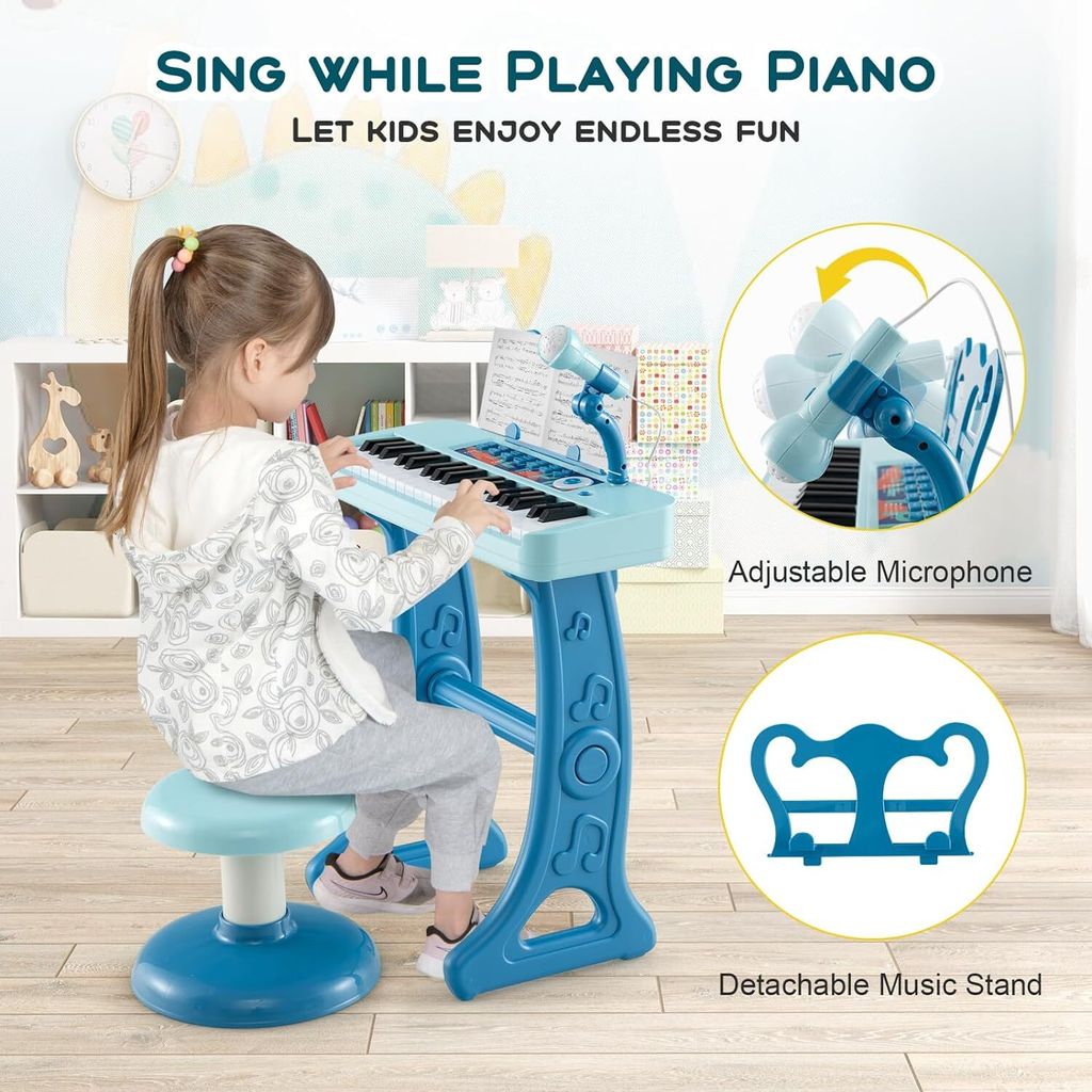 DREAMADE Kinder Keyboard 37 Tasten - Komplettset Mit Mikrofon, Hocker & Notenständer