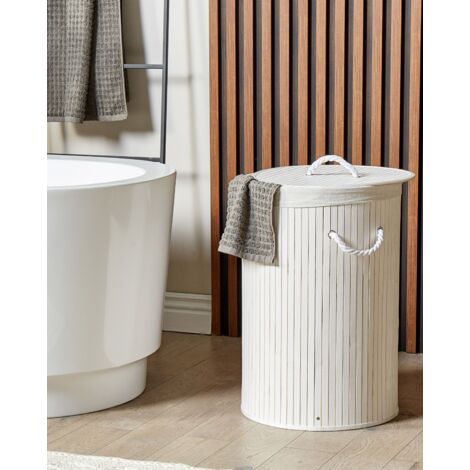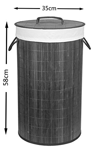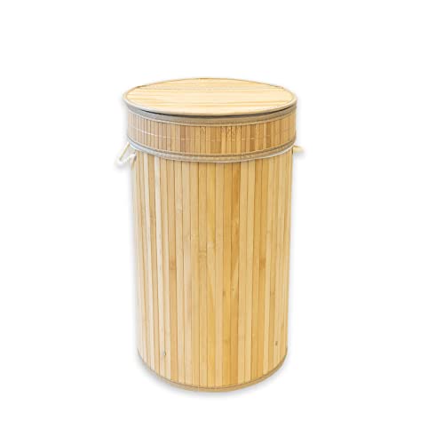 DRW Wäschekorb Rund Mit Deckel | 35x35x50cm Holz | Natürlicher Wäschekorb