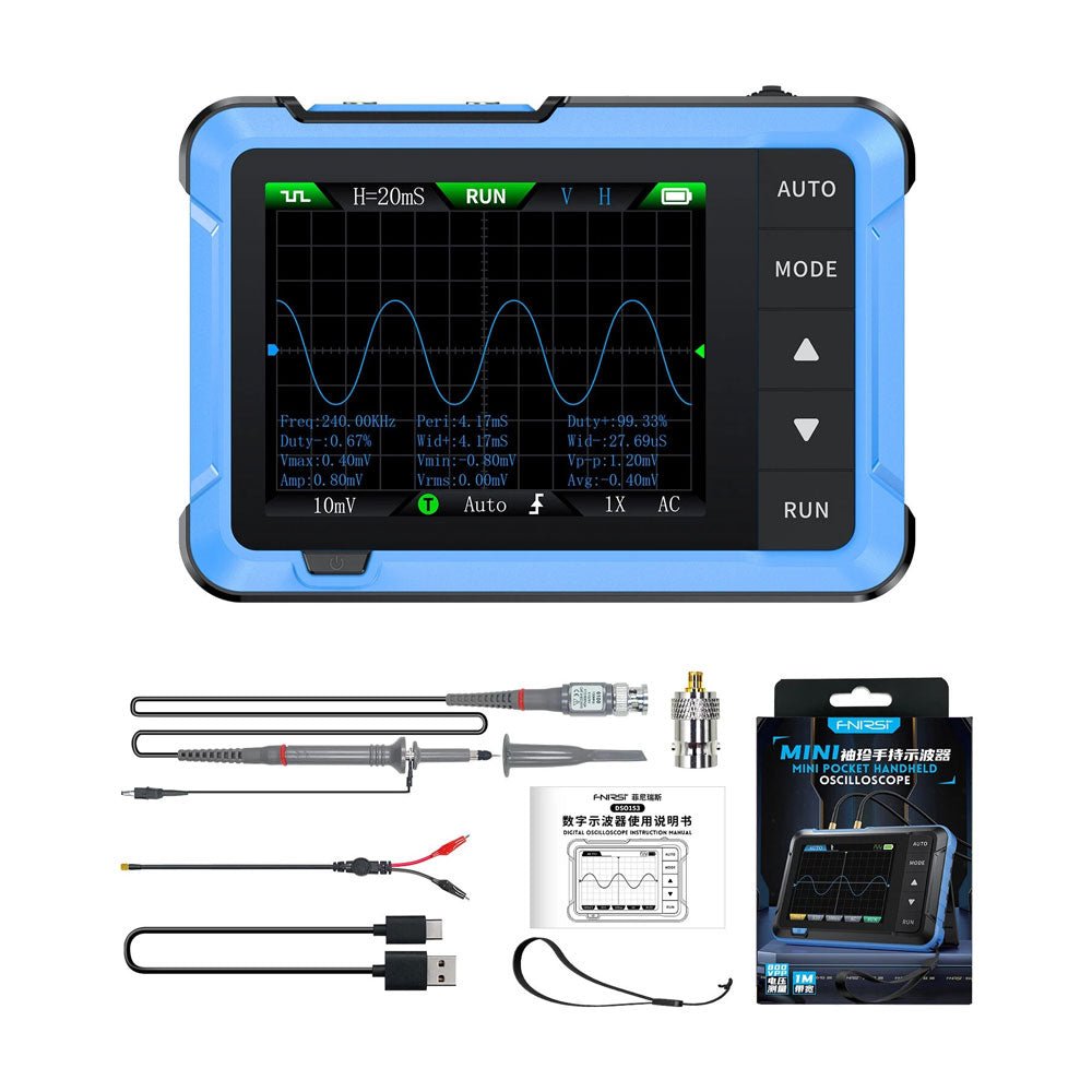 Hey, falls du nach einem praktischen Oszilloskop suchst, das nicht nur Messungen durchführt, sondern auch Signale erzeugen kann – hier bist du richtig! Das DSO153 ist super handlich und hat eine Bandbreite von 1 MHz bei einer Abtastrate von 5 MS/s. Egal, ob du periodische oder nicht-periodische Signale analysieren willst – mit den Triggerfunktionen (Einzel, Normal, Auto) klappt's problemlos. Und das Beste: Es ist auch ein Signalgenerator integrier, der Sinus-, Rechteck- und Sägezahnwellen bis 10 kHz erzeugen kann. Perfekt für Bastler, Techniker oder Hobby-Elektroniker! Der 2,8-Zoll-Bildschirm ist klar und hell, und der Akku hält ca. 4 Stunden. Du kriegst alles mitgeliefert: Oszilloskop, Typ-C-Kabel, Umhängeband, Krokodilklemmen und je nach Version sogar eine Hochspannungssonde. Ob in der Werkstatt, unterwegs oder daheim – mit dem Teil bist du immer gut ausgestattet, ohne viel Platz zu verbrauchen. Einfach aufladen und loslegen!