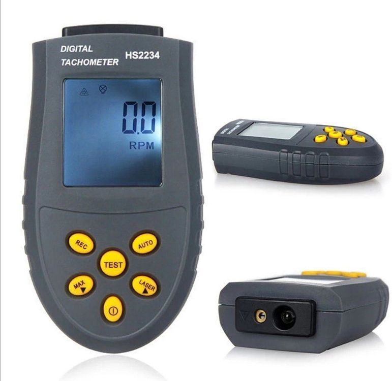 Perfekt für alle, die's genau wissen wollen! Dieser digitale Drehzahlmesser misst berührungslos von 2,5 bis 99.999 U/min - super präzise mit ±0,05% Genauigkeit. Das 0,77 Zoll LCD Display zeigt alles klar an. Misst Motoren, Ventilatoren, Drehmaschinen und mehr aus 50-500mm Entfernung. Kann Maximal-, Minimalwerte speichern und resetet sich automatisch. Läuft mit einer 9V Batterie (nicht dabei). Total handlich und leicht - ideal für Werkstatt oder unterwegs. Einfach aufs Objekt richten, MEM-Taste drücken und schon siehst du die Drehzahl. Ein Muss für jeden Techniker!