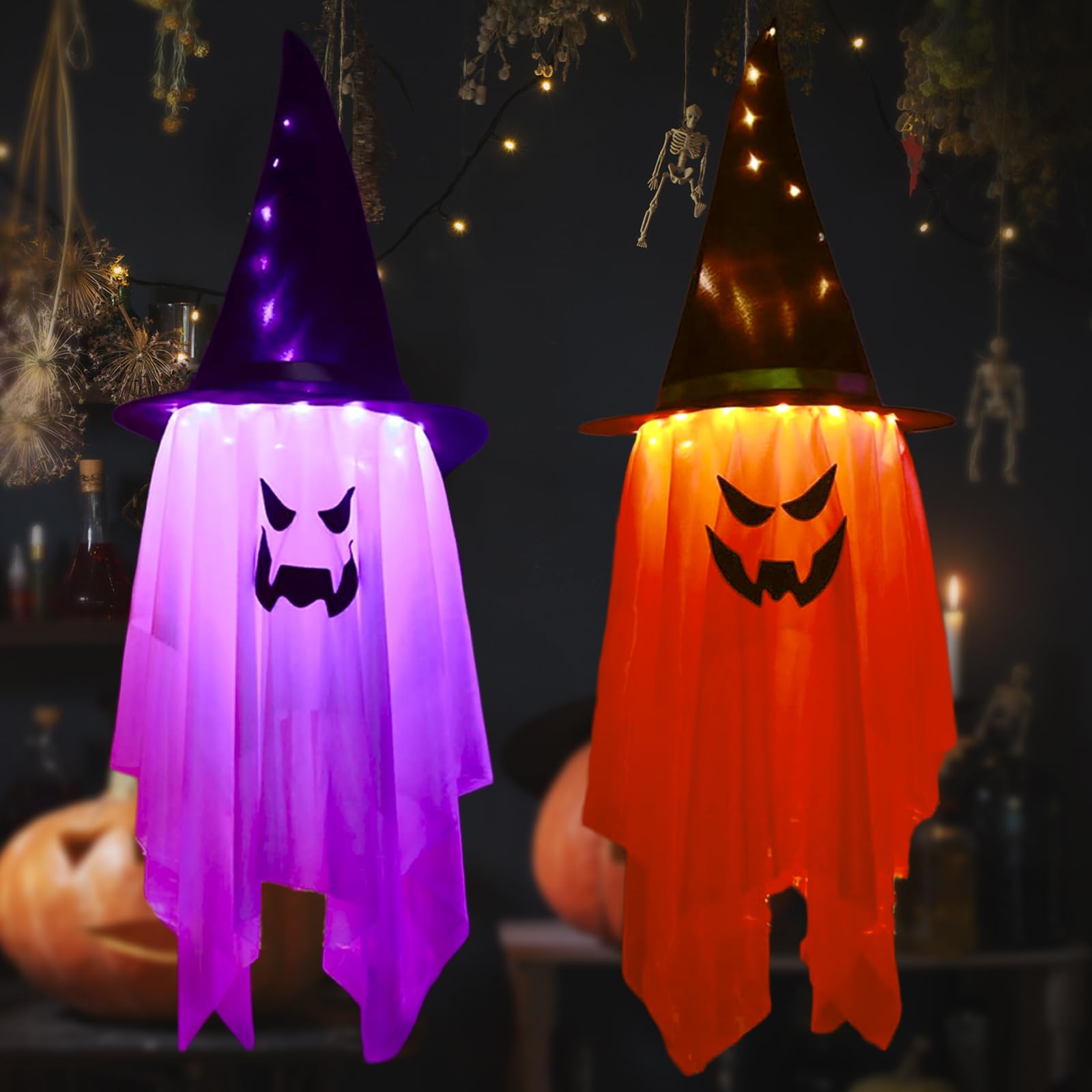 DTYDECLE 3er Set Halloween Geister - Leuchtende Outdoor-Deko Mit Hexenhut