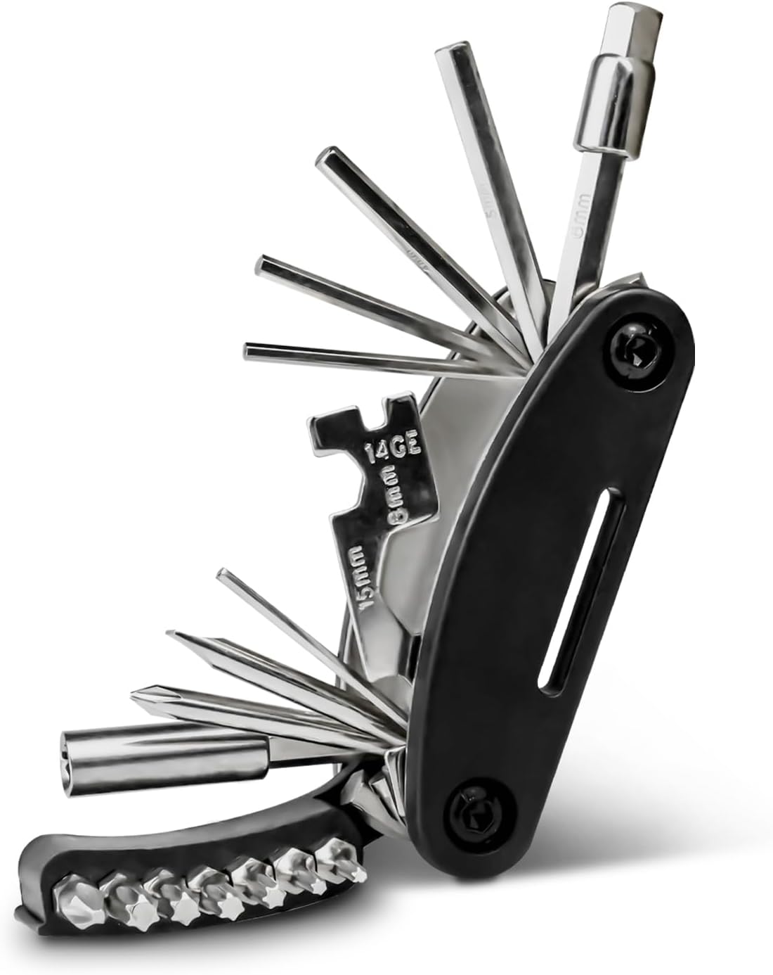 Pannenhilfe für unterwegs! Dieses praktische 16-in-1 Multitool von DWFYOI passt in jede Tasche und hilft bei kleinen Reparaturen am Fahrrad. Ob am Trekkingrad, Mountainbike oder Rennrad – mit den wichtigsten Werkzeugen bist du immer vorbereitet. Kompakt wie ein Handy, aber vollgepackt mit Funktionen. Einfach ausklappen und loslegen. Nie wieder mit plattem Reifen oder lockerer Schraube hilflos dastehen. Perfekt für die Fahrradtour, den Arbeitsweg oder die Wochenendausfahrt. Deutsche Qualität – wir stehen hinter unseren Produkten!