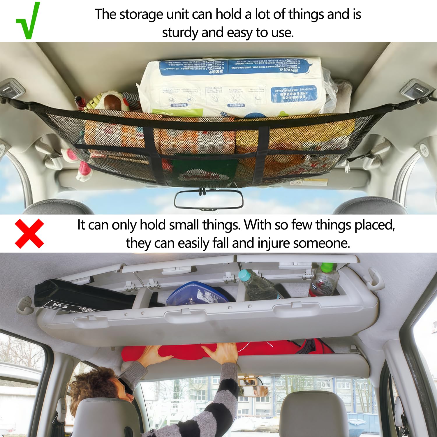 Kennst du das? Du packst dein Auto voll und während der Fahrt fliegt alles durcheinander? Mit diesem Auto-Dachnetz gehört das der Vergangenheit an! Das doppellagige Mesh-Netz mit Reißverschluss-Tasche ist der absolute Game-Changer für dein Auto. Maße: 70x50 cm, also genug Platz für Decken, Spielzeug, Einkäufe - was auch immer du transportieren musst. Aus hochwertigem Polyester-Material, mega elastisch und trotzdem robust. Die Installation ist kinderleicht: Einfach die 4 Schnallen befestigen, Riemen festziehen - fertig! Besonders praktisch für Familien: Babydecken, Kinderspielzeug und Co. bleiben sicher an ihrem Platz. Das Netz verhindert nicht nur das Rumfliegen von Gegenständen, sondern hält dein Auto auch sauber und ordentlich. Und das Beste: Passt in die meisten Autos! Egal ob Langstreckenfahrt, Campingurlaub oder der Großeinkauf - dieses Netz macht dein Auto sofort organisierter. Sag goodbye zum Chaos und hello zur Ordnung!