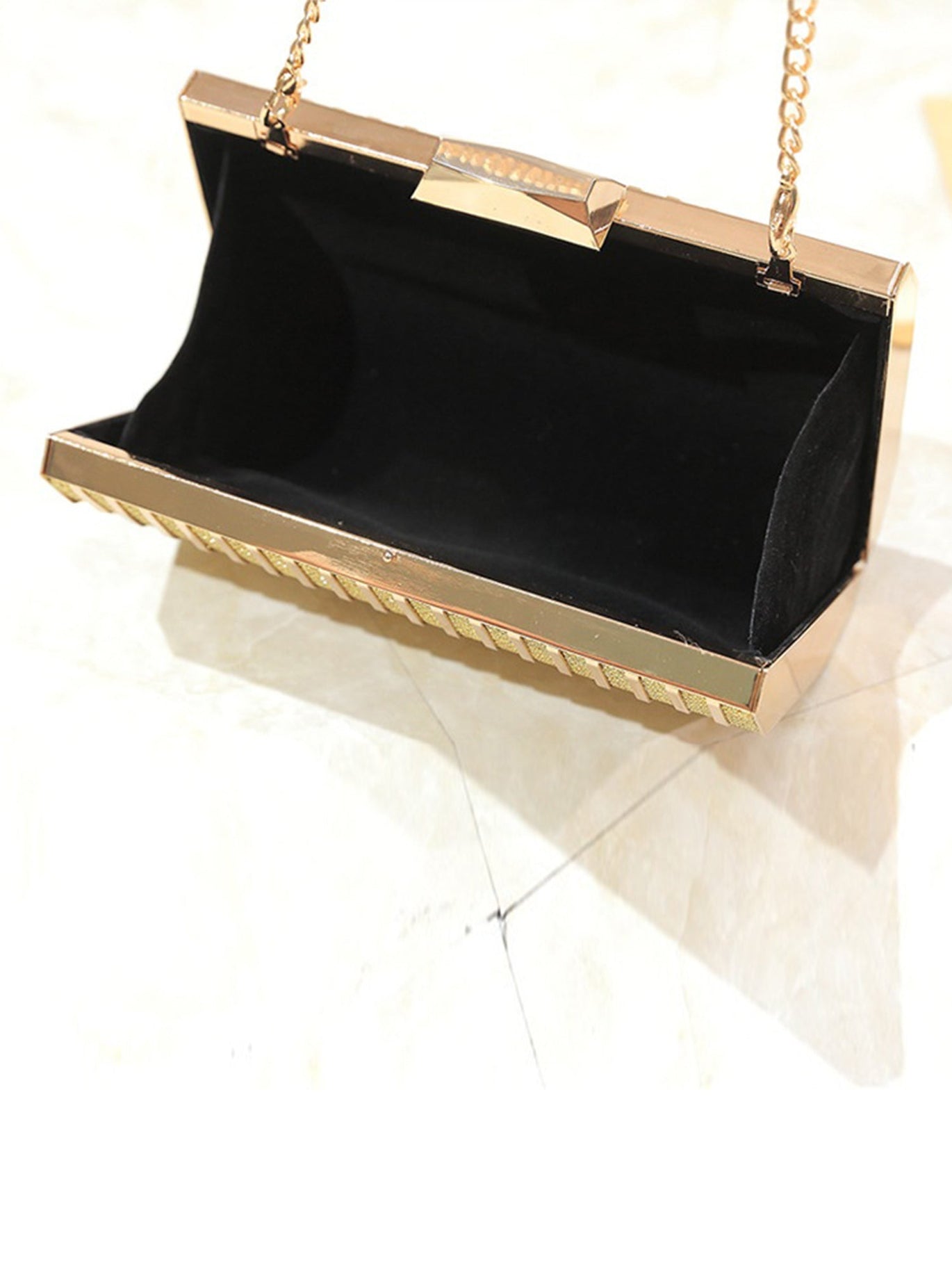 Wow, diese Clutch ist einfach traumhaft! Mit funkelnden Kristallen verziert - damit fällst du auf jeder Party auf. In der Tasche findest du Platz fürs Handy, Lippenstift und andere wichtige Kleinigkeiten. Plus: Ein extra Fach für Karten und Bargeld. Die abnehmbare Kette gibt dir verschiedene Trageoptionen - als Clutch in der Hand, oder als Umhängetasche, wenn du die Hände frei haben willst. Maße: 25 x 10 x 5 cm, Kette 120 cm lang. Aus glänzendem Kunstleder, mit sicherem Schnappverschluss. Perfekt zur Kombination mit deinem eleganten Abendkleid. Ob Hochzeit, Gala oder Date Night - mit dieser Tasche bist du der Star des Abends!