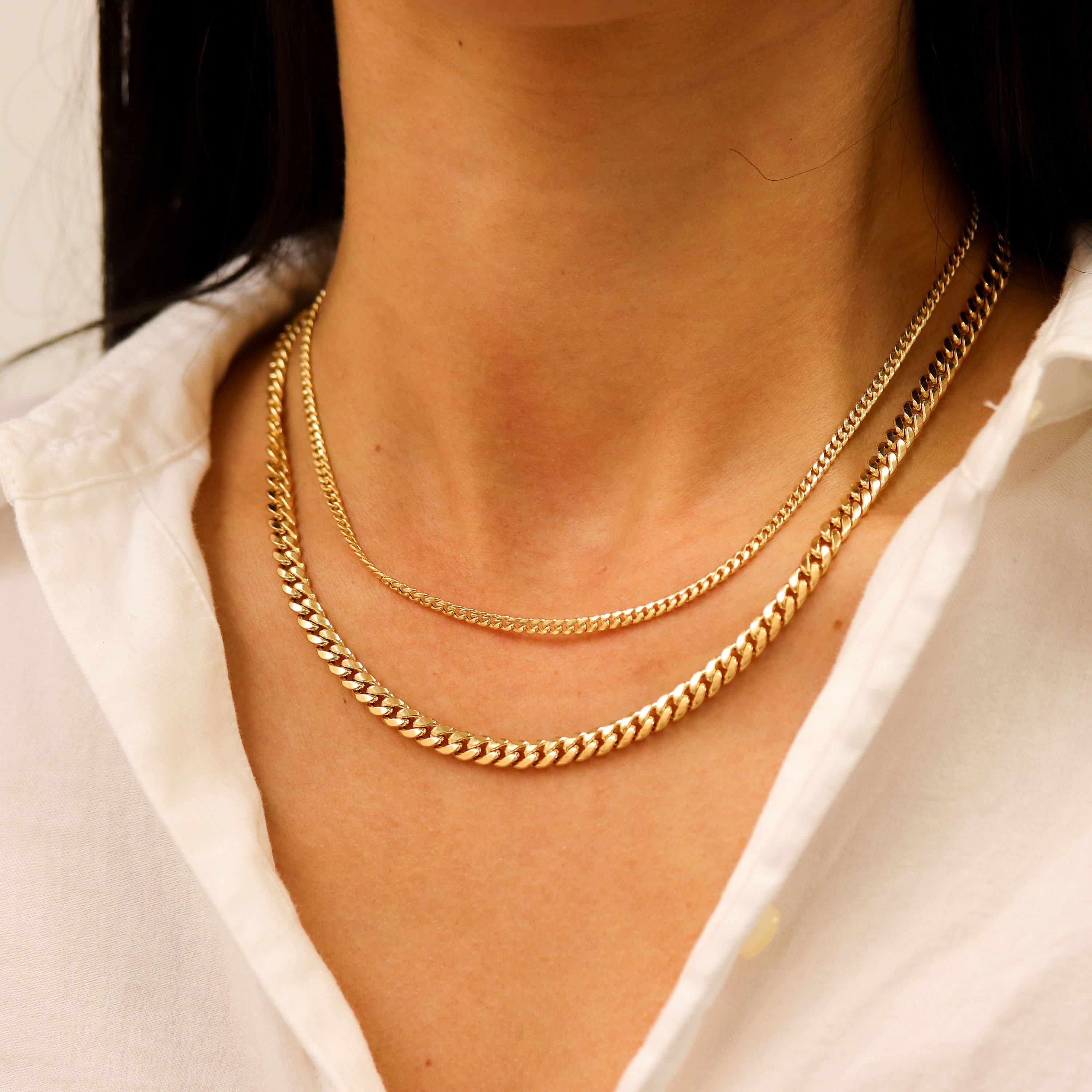 Stylish und vielseitig! Dieses wunderschöne Layered-Ketten-Set von Tewiky bringt modernen Glanz in deine Schmucksammlung. Enthalten sind zwei trendige Ketten: eine Cuban Link Kette und eine Paperclip Kette, beide in 14K Vergoldung. Mit 39,5cm Länge plus 5,5cm Verlängerung passt sie jeder Frau perfekt. Aus nickelfreiem Messing gefertigt - hypoallergen und hautfreundlich. Die 8mm breite Cuban Link Kette ist ein absoluter Trendsetter. Perfekt alleine getragen oder mit anderen Ketten kombiniert für einen stylischen Layered Look. Ob zum Büro-Outfit, zum Abendkleid oder zur Freizeitbekleidung - diese Ketten passen immer. Handgefertigt und verheddert sich nicht, also immer griffbereit. Ein wunderbares Geschenk für Geburtstage, Jubiläen oder einfach als Aufmerksamkeit für dich selbst. Strahle mit diesem eleganten Schmuckstück!