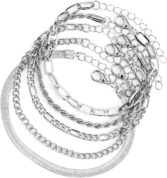 Total vielseitig und super stylisch! Dieses 5er-Set Armbänder ist perfekt für alle, die ihren Look aufpeppen wollen. Aus hochwertiger Zinklegierung mit 14k Vergoldung sehen sie teuer aus, sind aber super erschwinglich. Die Oberfläche ist glatt und farbecht - kein Verblassen oder Verfärben! Besonders praktisch: Jedes Armband ist verstellbar von 17cm auf 22cm, passt also an jedes Handgelenk. Das Set enthält verschiedene Styles - von der flachen Schlangenkette über Cuban Links bis zur Büroklammer-Kette. So kannst du sie einzeln tragen oder gestapelt für den angesagten Layering-Look. Die Verschlüsse sind einfach zu bedienen, sogar mit einer Hand. Perfekt für den Alltag, Büro, Date oder besondere Anlässe. Das beste: Sie sind nickelfrei und hypoallergen, also auch für empfindliche Haut geeignet. Super als Geschenk zu Geburtstag, Valentinstag oder einfach so - damit machst du garantiert Freude!