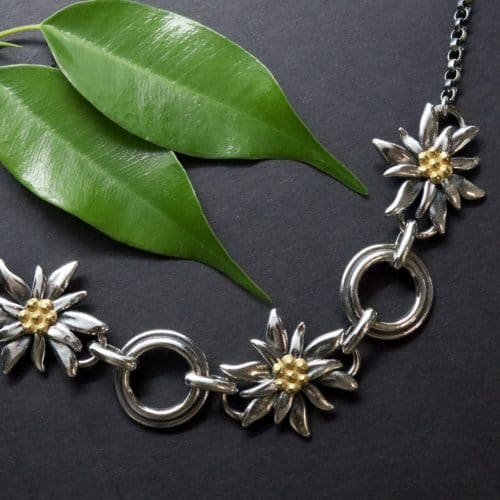 TOWLEING Trachtenschmuck Set Damen 4-teilig - Edelweiß Halskette Armband Ohrstecker Dirndl Schmuck