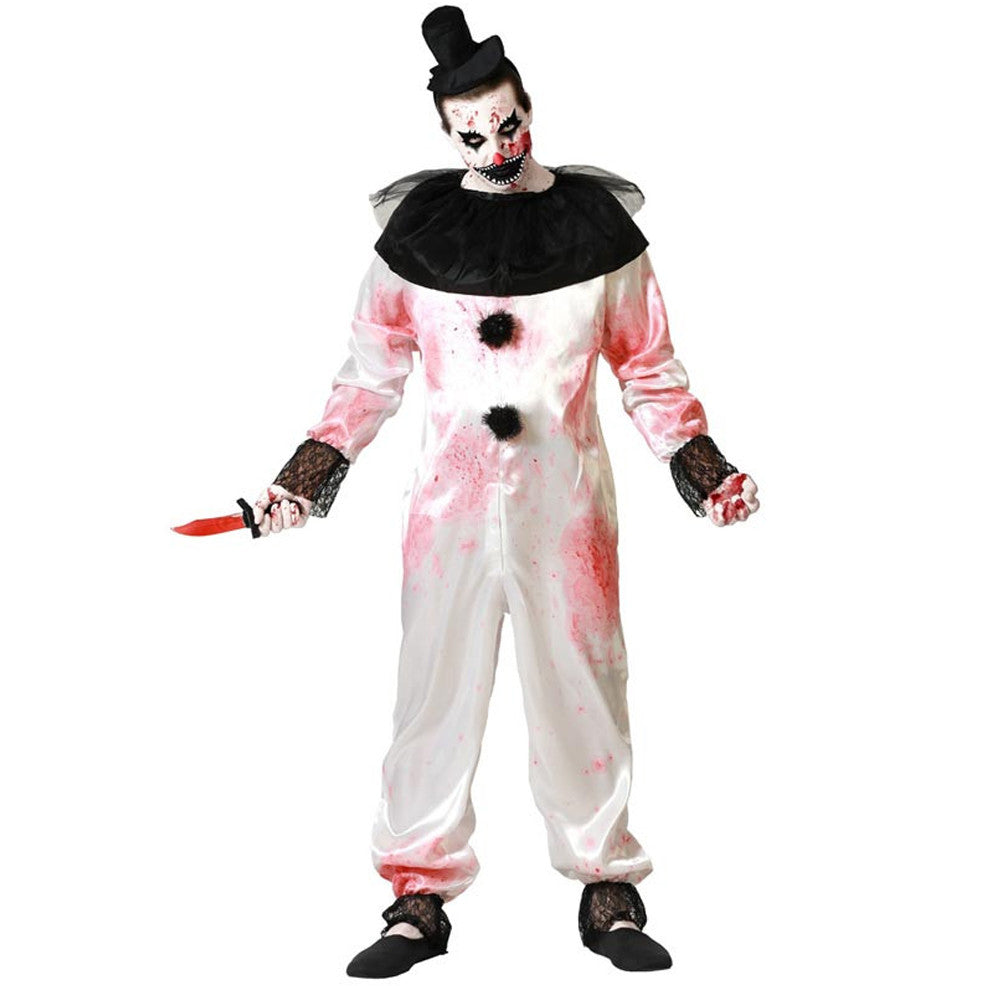 Bereit für die gruseligste Halloween-Party? Dieses authentische Terrifier Clown Kostüm macht dich zum absoluten Albtraum! Schwarz-weißes Design mit blutigen Details für den echten Gruselfaktor. Aus dickem, bequemem Stoff mit kurzen Ärmeln. Reißverschluss auf der Rückseite für einfaches An- und Ausziehen. Perfekt für Halloween, Cosplay-Events, Karneval oder Mottopartys. Einfach in kaltem Wasser waschen und trocknen lassen. Werde zur unvergesslichen Horror-Ikone!
