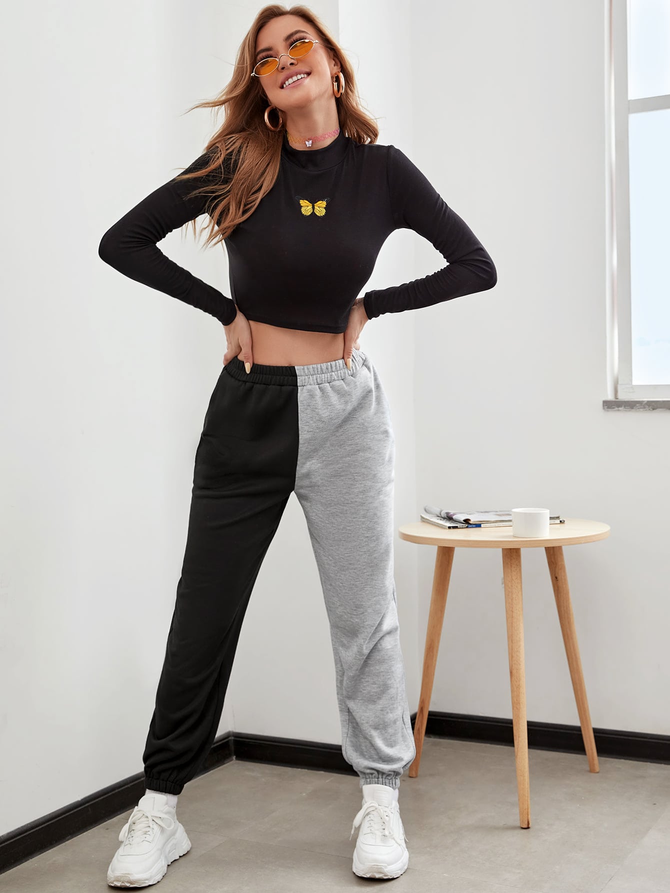 Zweifarbige Jogginghose Damen Baumwolle | High Waist Oversize Freizeithose Trend