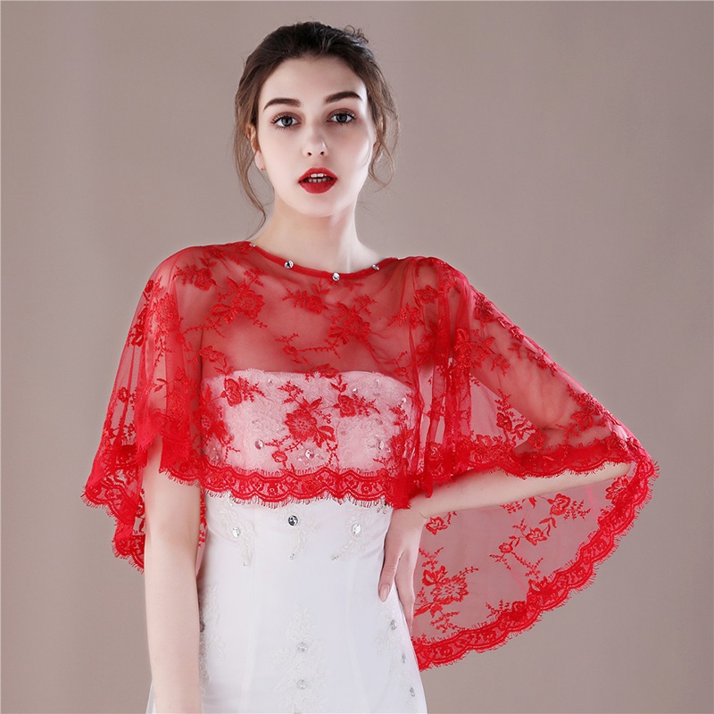 Damen Chiffon Schal Elegant - Spitzen Stola Für Hochzeit & Abendkleider