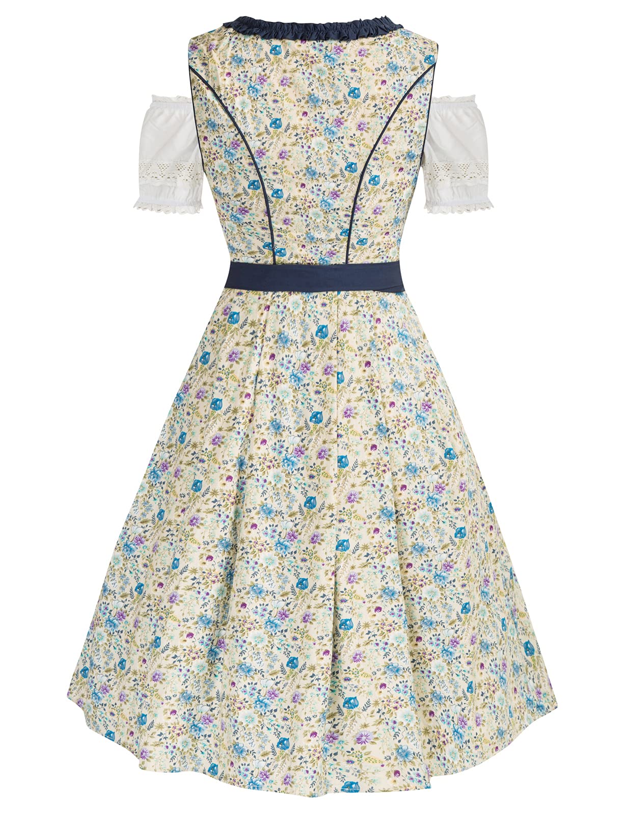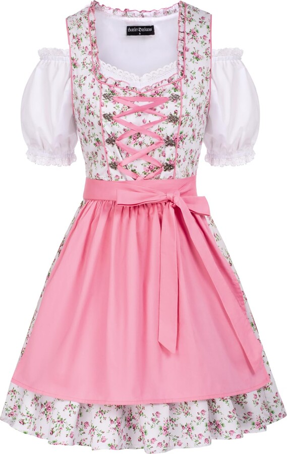 Oktoberfest, hier kommen wir! Dieses wunderschöne 3-teilige Dirndl-Set von SCARLET DARKNESS lässt jedes Trachtenherz höher schlagen. Enthalten sind ein festliches Dirndl-Kleid mit bezauberndem Blumendruck, eine kurze Dirndlbluse mit U-Ausschnitt und die passende Schürze mit verstellbarem Bindegürtel. Das Schnürung vorne verleiht dem Dirndl einen authentischen Look, während der komfortable Stoff für optimalen Tragekomfort sorgt. Perfekt fürs Oktoberfest, Halloween-Cosplay oder andere festliche Anlässe. Einfach in der Pflege - Hand- oder Maschinenwäsche bei max. 30°C. Bitte vor dem Bügeln auf niedriger Stufe beachten, da die Kleidung gefaltet geliefert wird. Mit diesem Dirndl bist du die Königin jedes Volksfests!