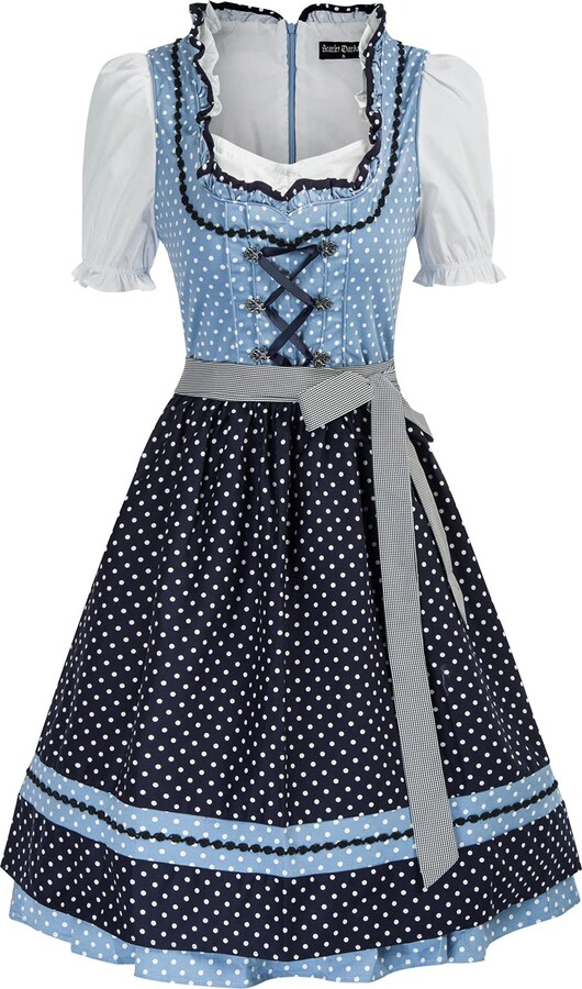 SCARLET DARKNESS Damen Dirndl Set 3-teilig - Oktoberfest Trachtenkleid Mit Bluse & Schürze
