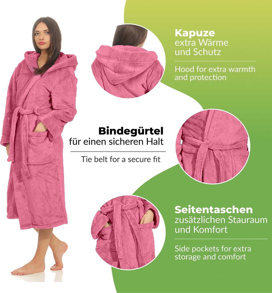 UMIPUBO Bademantel Damen - Flauschiger Fleece Morgenmantel Mit Kapuze
