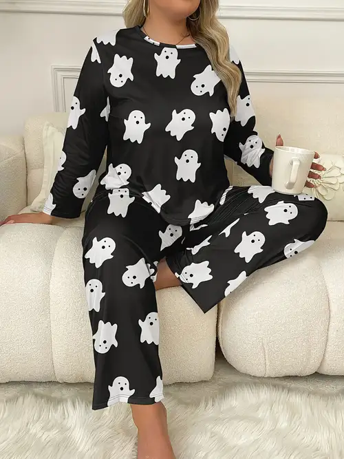 Halloween Schlafhose Damen - Fledermaus Geist Kürbis Print Mit Kordelzug
