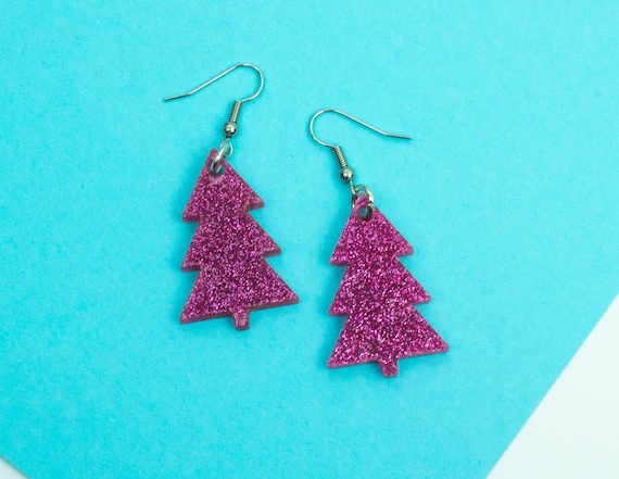 Weihnachtsbaum Ohrringe Für Damen - Glitzernde Acryl Christbaumschmuck Ohrringe