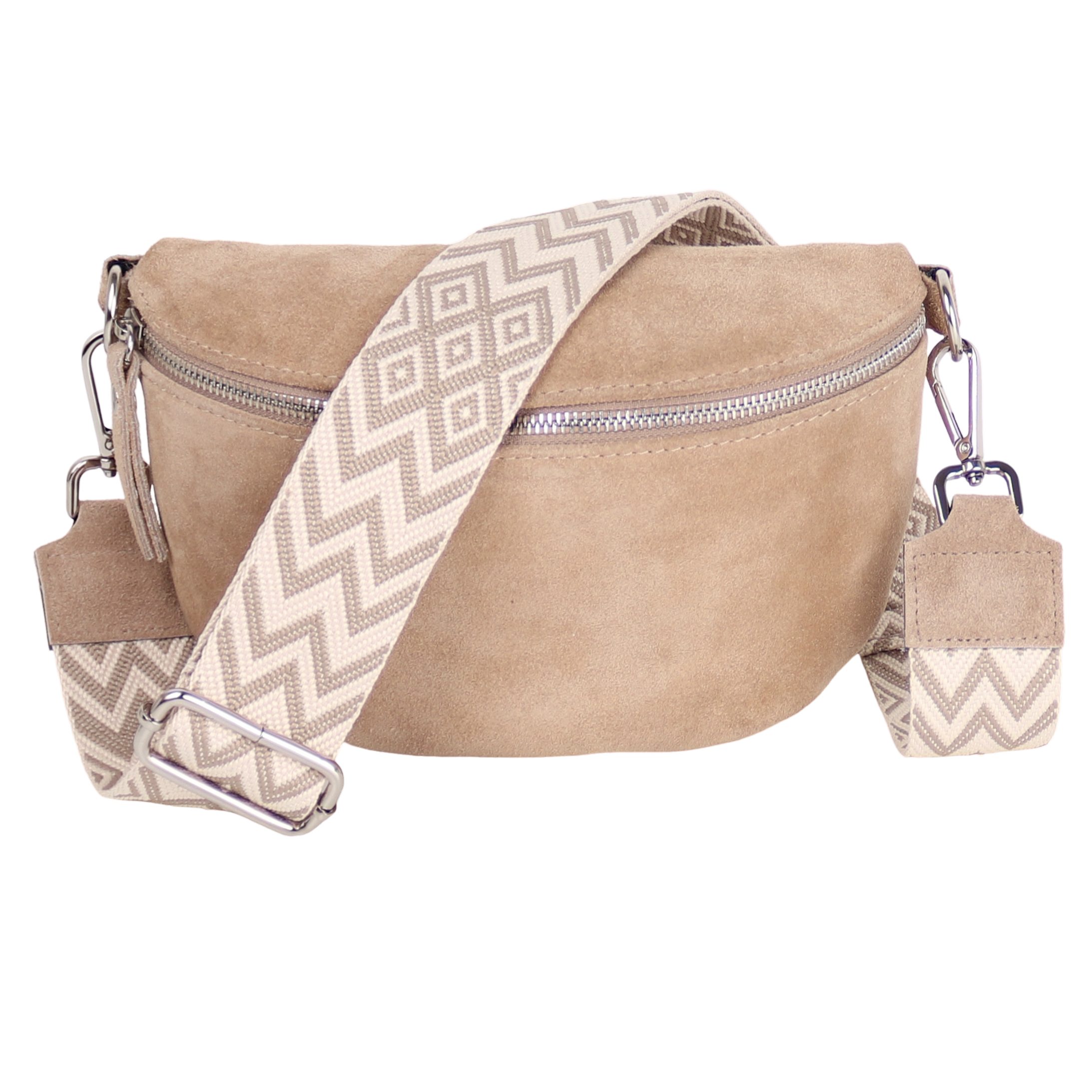 Diese süße Wildledertasche in Halbmond-Form ist dein neuer Lieblingsbegleiter! Aus weichem Wildleder in tollen Farben wie Rot, Kaffeebraun, Khaki, Braun oder Schwarz.\\n\\nMit 101 cm langem, verstellbarem Schultergurt kannst du sie als Crossbody-Tasche, Schultertasche oder in der Hand tragen. Super praktisch: Im Winter trägt sie sich nicht auf dicker Kleidung auf!\\n\\nIm Hauptfach mit Reißverschluss findest du Platz für alles Wichtige: Handy, Geldbörse, Kosmetik, Schlüssel - alles hat seinen Platz. Und das Wildleder ist nicht nur schön weich, sondern auch verschleißfest und schmutzabweisend.\\n\\nPerfekt für den Alltag, zum Einkaufen, für Reisen oder für einen stylischen Stadtbummel. Sie passt zu jeanslässigem Streetstyle genauso wie zu eleganteren Outfits.\\n\\nEin tolles Geschenk für Weihnachten, Geburtstage oder einfach so - praktisch, schön und total vielseitig. Mit dieser Tasche machst du immer eine gute Figur!