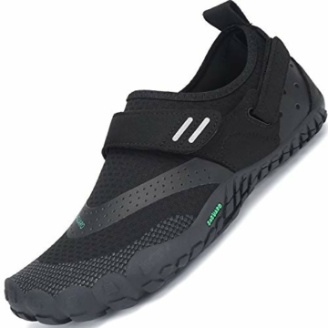 Spürst du auch gern den Boden unter deinen Füßen? Dann sind diese Barfußschuhe genau dein Ding! Die sind so leicht und flexibel, dass du fast vergisst, dass du überhaupt Schuhe trägst. Die breite Zehenbox gibt deinen Zehen genug Platz - kein Gedränge mehr! Das atmungsaktive Mesh-Material trocknet super schnell, perfekt für Strandtage oder nach dem Schwimmen. Die Sohle ist richtig rutschfest, also keine Angst vor nassen Steinen oder glattem Untergrund. Egal ob du wanderst, joggen gehst oder einfach nur am Strand chillst - mit diesen Schuhen fühlst du dich frei und sicher zugleich. Schnür sie dir einfach so, wie es sich für dich am bequemsten anfühlt. Deine Füße werden's dir danken!