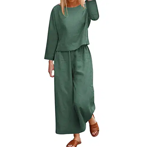 Damen Hosenanzug Sommer Elegant - Zweiteiler Set Mit Bluse & Weitbein Hose