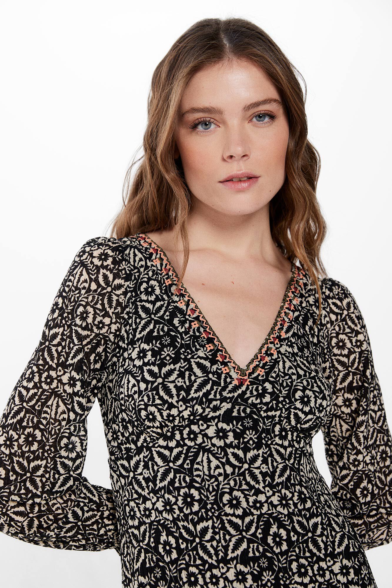 Springfield Damen Jacquard Bluse - Mehrfarbig Mit Bordüre Design