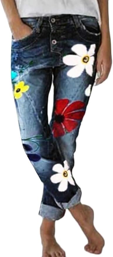 Damen Jeans Mit Blumenmuster 2025 - Skinny Fit Mit Zerrissenen Knien