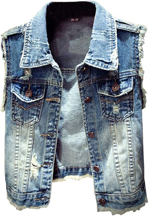 Mega-cooler Look mit dieser ärmellosen Jeans-Weste von Runyue! Der zerrissene, gewaschene Denim-Stoff sieht total lässig aus und passt zu fast allem. Mit Knopfleiste und Umlegekragen ist sie vielseitig kombinierbar - über T-Shirts, Blusen oder sogar Kleidern. Aus weichem, bequemem Denim-Material das sich gut anfühlt. Maschinenwaschbar, also super pflegeleicht. In Größen S bis XL erhältlich - bitte die Größentabelle beachten! Perfekt für den Frühling, Sommer oder Herbst - ob zum Shoppen, für Festivals oder einfach für den Alltag. Diese Weste gibt deinem Outfit sofort diesen lässigen, individuellen Style. Hol sie dir und rocke den Denim-Look!