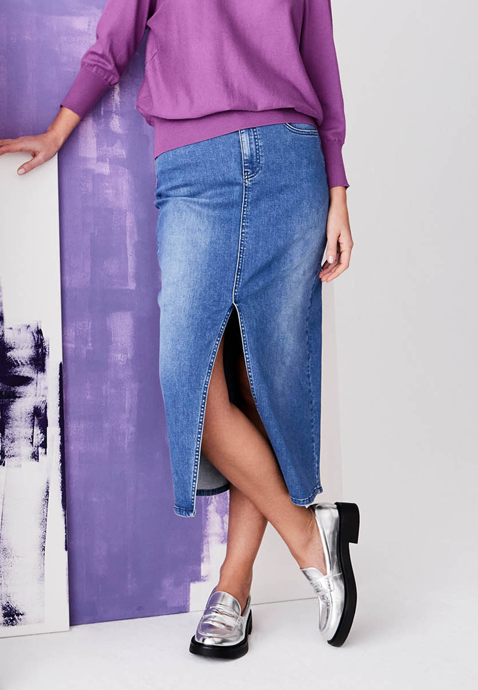 Damen Jeansrock Mit Seitenschlitz - Stretch, Hohe Taille, Knopfleiste