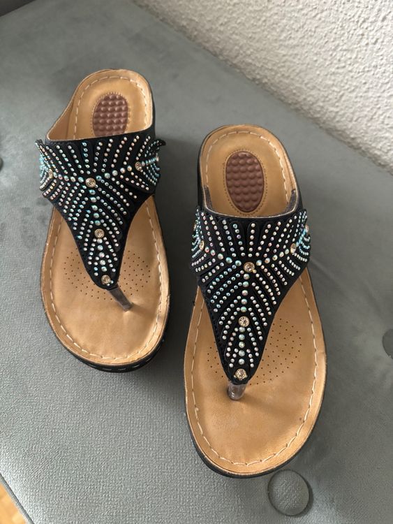 Wow, diese Sandalen sind einfach traumhaft für den Sommer! Die transparenten Keilsandalen mit wunderschönen Blumen-Applikationen und dezentem Glitzer sind der absolute Hingucker. Mit elastischem Slingback und offener Zehe sitzen sie perfekt und sind super bequem. Die rutschfeste Sohle macht sie auch zu idealen Wasserschuhen für Strand und Pool. Leicht wie eine Feder und elegant zugleich - perfekt für sommerliche Spaziergänge, Stadtbummel oder sogar besondere Anlässe. Wichtig: Die Sandalen orientieren sich an China-Standardgrößen, daher empfehlen wir, eine Nummer größer als gewohnt zu bestellen. So vermeidest du böse Überraschungen! Ob zu Sommerkleidern, Shorts oder Röcken - diese Sandalen machen jedes Outfit sofort sommerlich und stylisch. Die Verarbeitung ist hochwertig und die Glitzer-Elemente sind fest angebracht. Ein Must-Have für jede Damengarderobe!