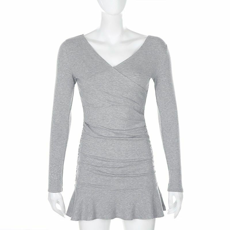 Damen Kleid Mit Rüschen - Langarm Figurbetont Aus Viskose Für Winter 2025