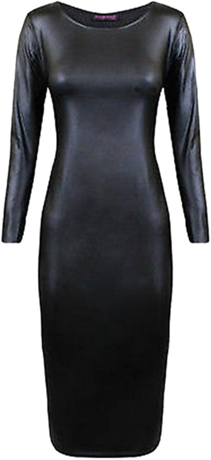Damen Kleid PU Leder Look - Elegantes Etuikleid Für Party & Karneval