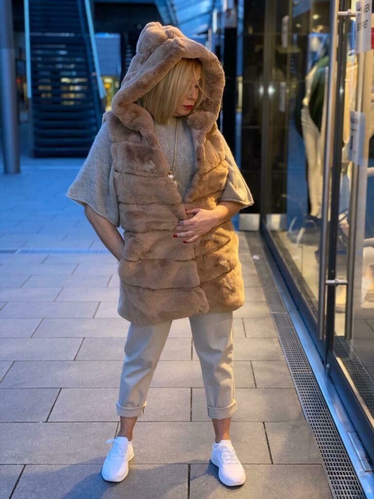Boah, diese Weste ist einfach nur kuschelig! Aus weichem Kunstpelz gefertigt, fühlt sie sich an wie eine warme Umarmung an kalten Tagen. Mit praktischer Kapuze und Tunnelzug kannst du sie ganz nach Bedarf enger oder weiter machen. Seitliche Eingrifftaschen sind super für die Hände oder für dein Handy, und der Reißverschluss schließt sicher. Das glatte Innenfutter liegt angenehm auf der Haut, und der Regular Fit sitzt genau richtig - nicht zu eng, nicht zu weit. In der schönen Coffee-Farbe sieht sie nicht nur edel aus, sondern passt auch zu fast allem in deinem Kleiderschrank. Ob für den Stadtbummel, zum Einkaufen oder einfach nur für gemütliche Tage - mit dieser Weste bist du immer stylisch und warm unterwegs. Einfach ein Must-Have für den Winter!