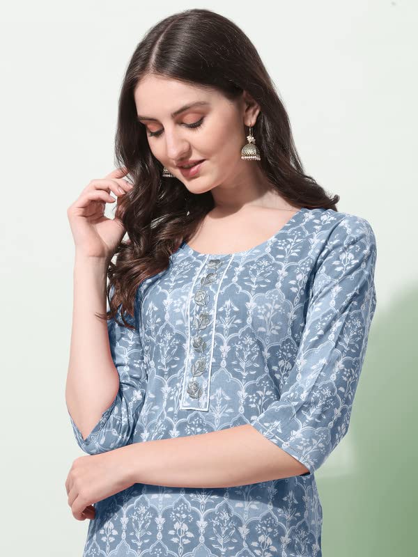 MIRCHI FASHION Damen Kurti - Pailletten Stickerei Mit A-Linie Design