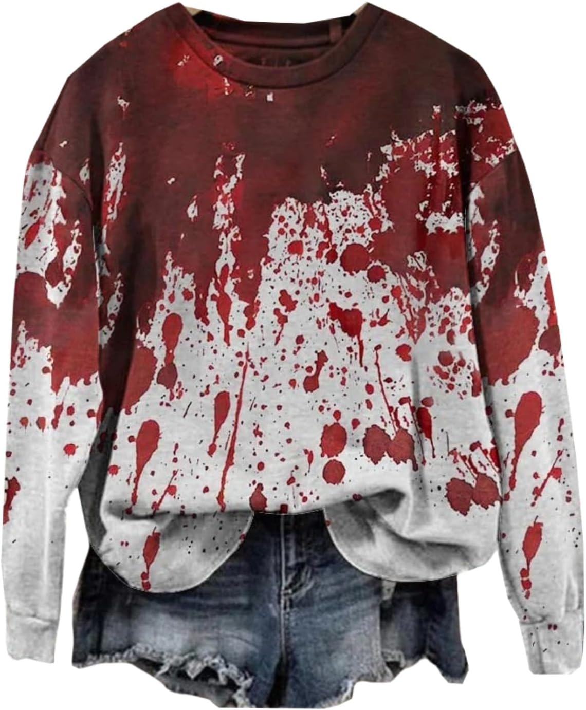 Qixiu Halloween Sweatshirt Damen - Lässiger Wickelpullover Mit Halloween-Druck