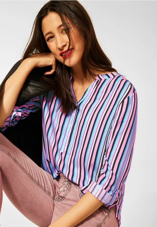 Damen Langarm Bluse Blau-Weiß Gestreift - Oversized Hemdbluse Für Leggings & Business Casual