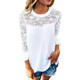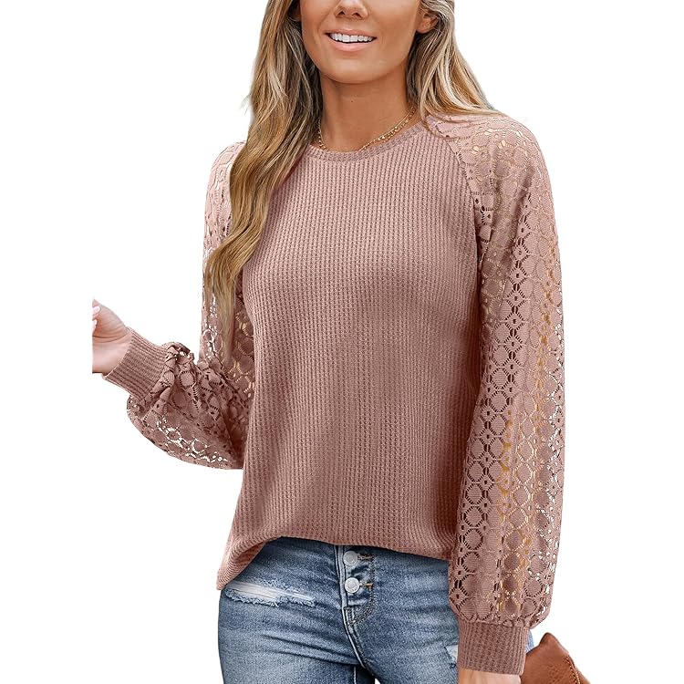 Damen Langarm Bluse Mit Spitzenärmeln - Elegantes Waffel-Top Für Business Outfits