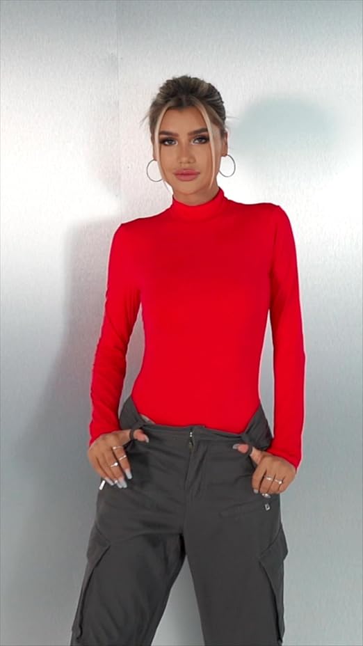ALGALAROUND Damen Langarm Body - Stehkragen Bodysuit Aus Rayon & Elastan