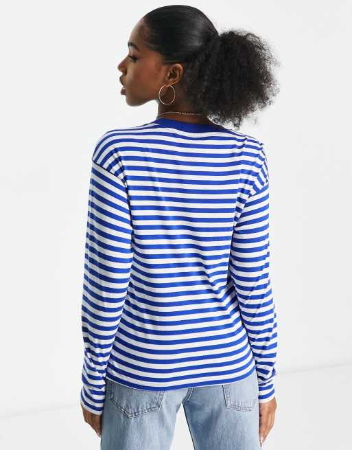 Damen Langarm Shirt Gestreift - Lockere Passform Mit Gebogenem Saum In Übergrößen