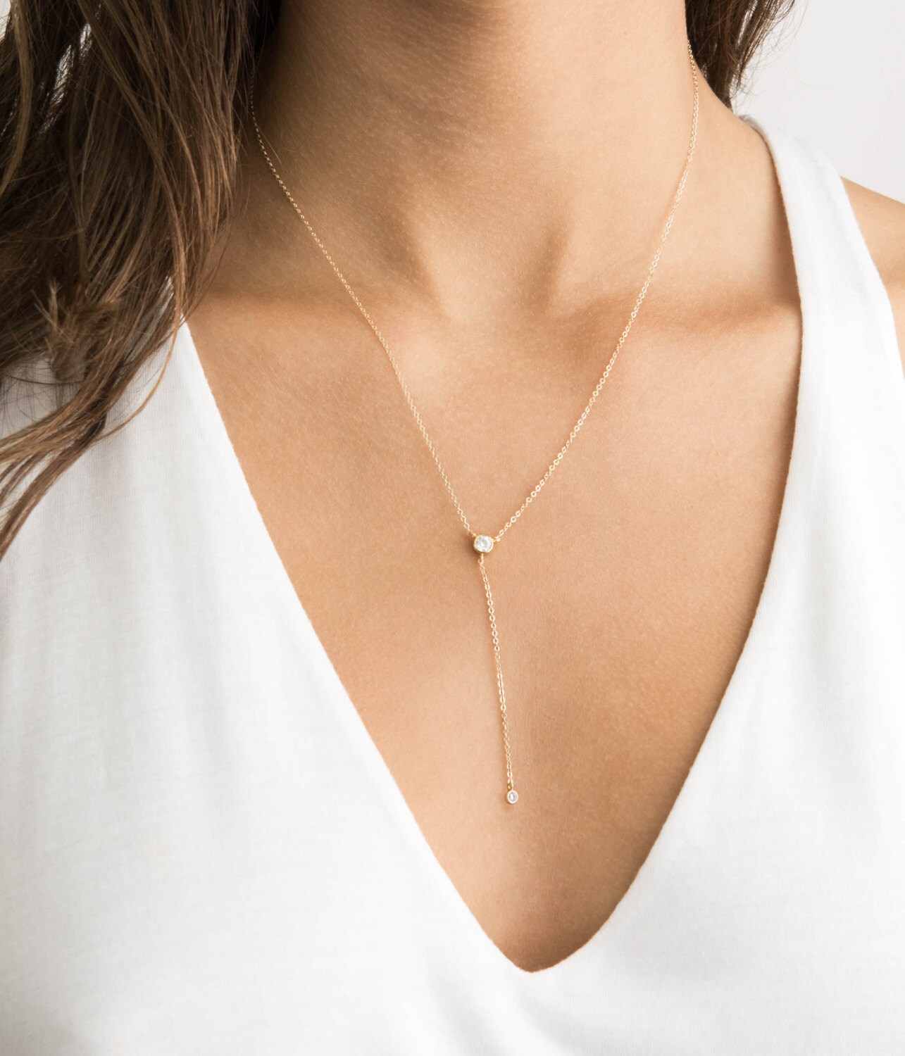 Damen Lariat Halskette Gold - 14K Goldvergoldet Y-Form Körperkettchen